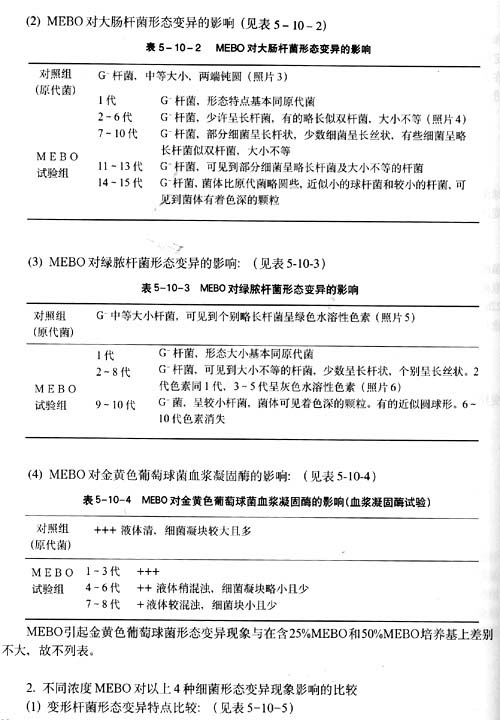(1) MEBO对变形杆菌形态变异的影响(见表5-10-1)