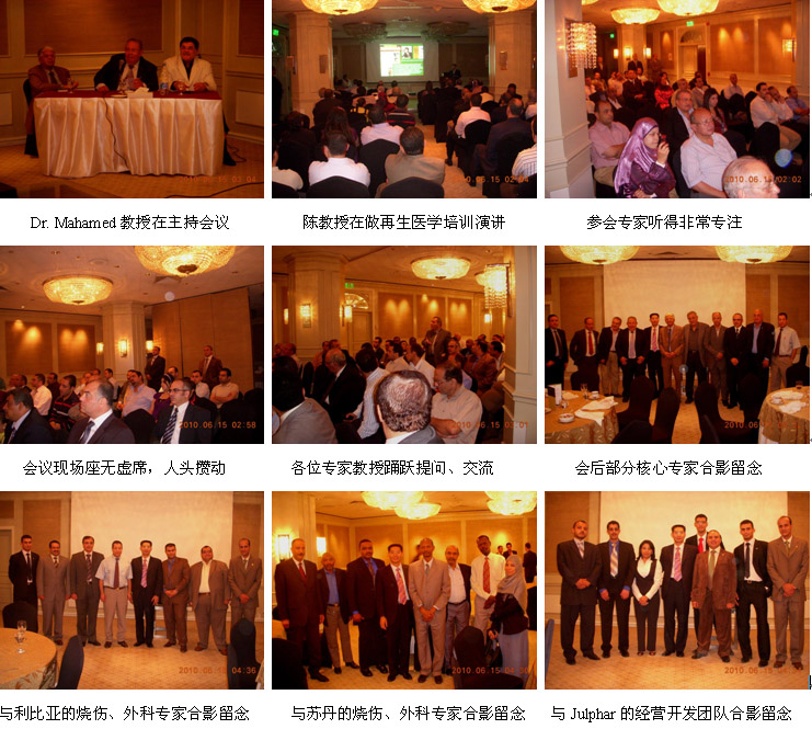 2010年6月15日,,,, ,经由全心的组织和策划,,,, ,应埃及烧伤整形外科学会的约请,,,, ,6名来自苏丹、11名来自利比亚和45名来埃及的烧伤整形外科、创伤骨科和通俗外科的临床医师们相聚在埃及首都开罗,,,, ,共聚一堂聆听来自中国的烧伤再生医学专家的演讲、学习和交流烧伤再生医学的临床履历。。。。。。。。