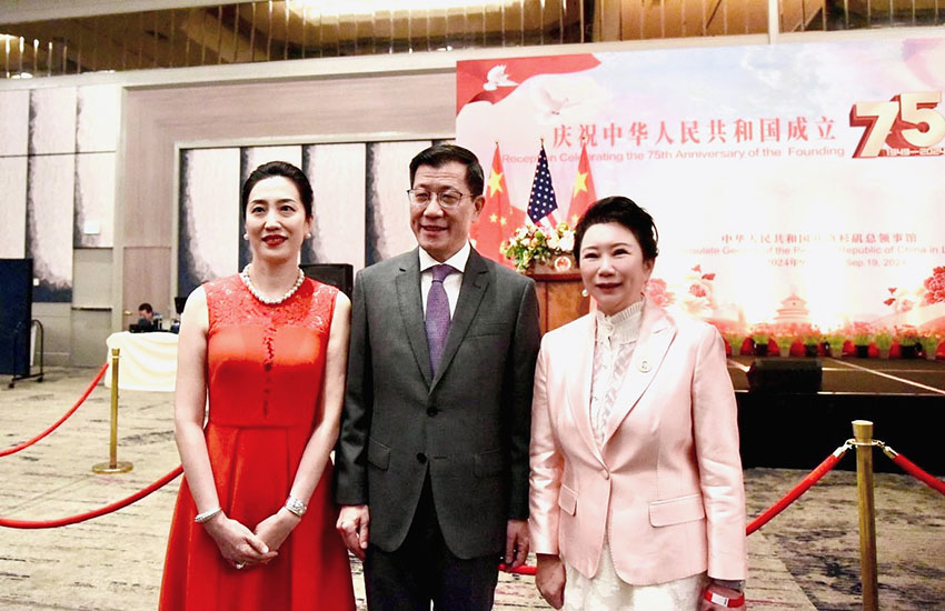 中国驻洛杉矶总领事馆庆祝中华人民共和国建设 75 周年招待会于 9 月 19 日在好莱坞举世影城希尔顿旅馆举行,,,,,, ,,NG相信品牌的力量官网集团董事局主席李俐再次荣膺约请,,,,,, ,,莅临盛会。。。。 。。 。。此次盛会不但汇聚了近六百位来自政界、商界、文化界及社会各界的精英与友人,,,,,, ,,包括中国驻洛杉矶总领事郭少春及其夫人王薇参赞、加州政要方树强众议员、科恩郡督察Leticia Perez、惠蒂尔市市长Joe Vinatieri、前加州参议院大都党首脑Bob Hertzberg与前洛杉矶郡长Michael Antonovich等重量级嘉宾,,,,,, ,,更成为了中美友谊与合作精神的璀璨见证。。。。 。。 。。
